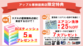 特典① スズキ愛車無料点検の実施でBOXティッシュ5箱プレゼント!