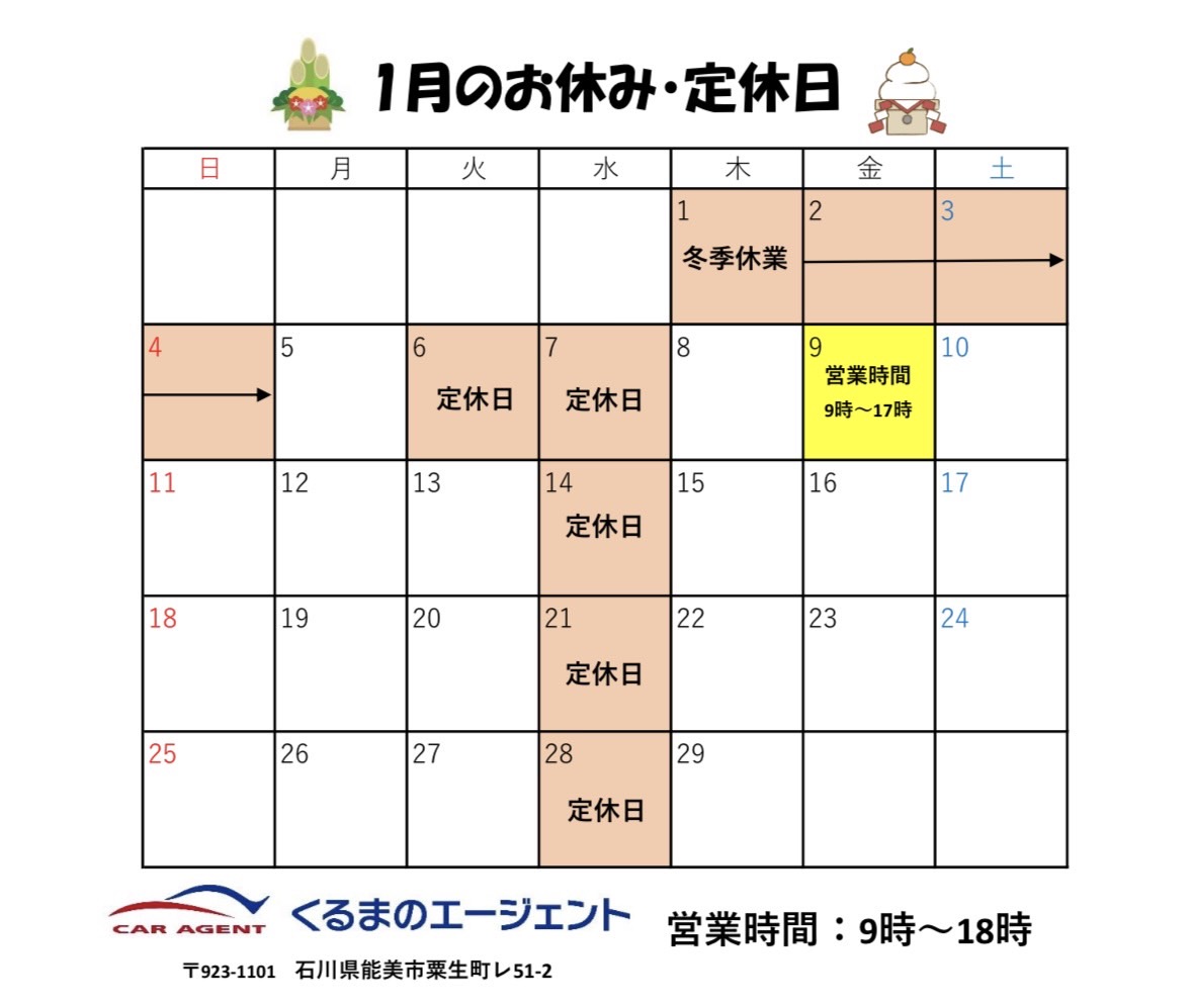 12月より営業時間を9時~18時に変更いたしておりますのでご注意ください。